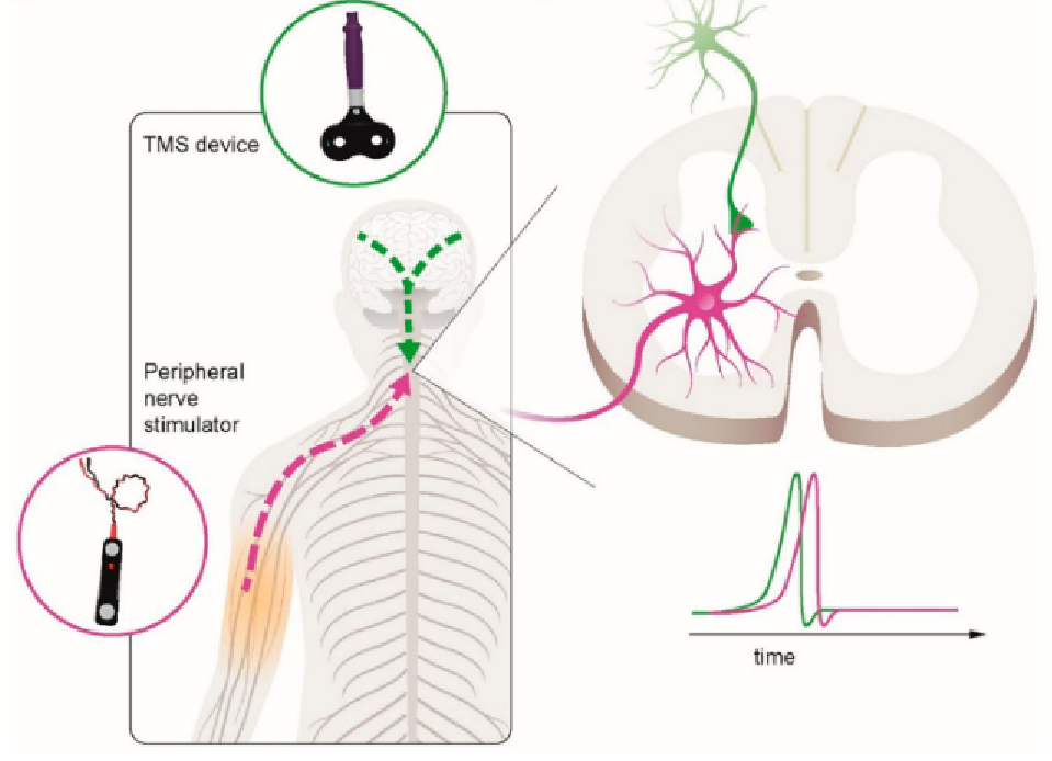 磁电成对关联刺激 (paired associative stimulation, PAS),是一种基于脉冲时序依赖可塑性理论,将低频外周神经电刺激与中枢经颅磁刺激配对,诱导突触可塑性变化的无创脑刺激技术,可应用于康复医学、神经内科及神经精神疾病相关研究。
