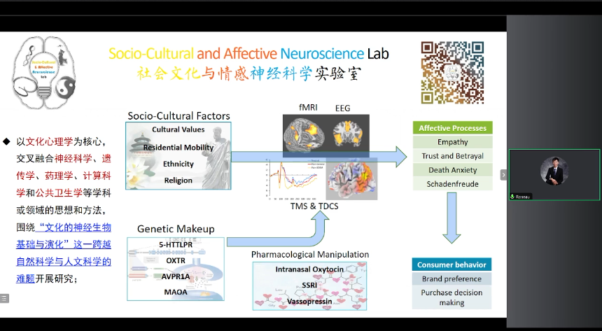 我们课题组叫社会文化与情感神经科学实验室,主要是围绕文化心理学的一些研究主题开展研究。不但会使用心理学的传统研究方法,而且还会交叉融合到神经科学、遗传学、药理学、计算科学及公共卫生学的一些理论以及方法,来开展这种交叉科学的研究工作。