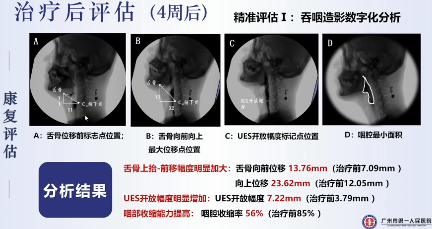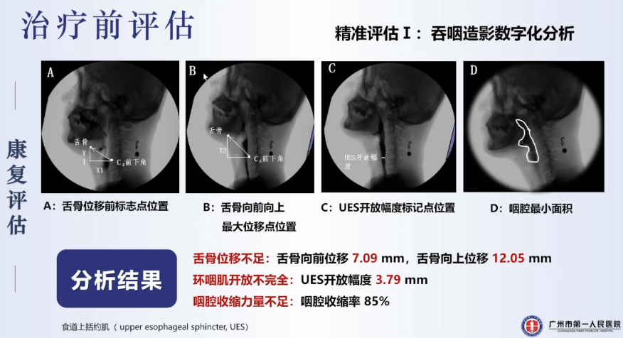 李医生团队通过吞咽造影数字化分析、高分辨率咽腔压力测定、咽内肌群MEP地形图这三项技术对患者进行了精准化的康复评估:
