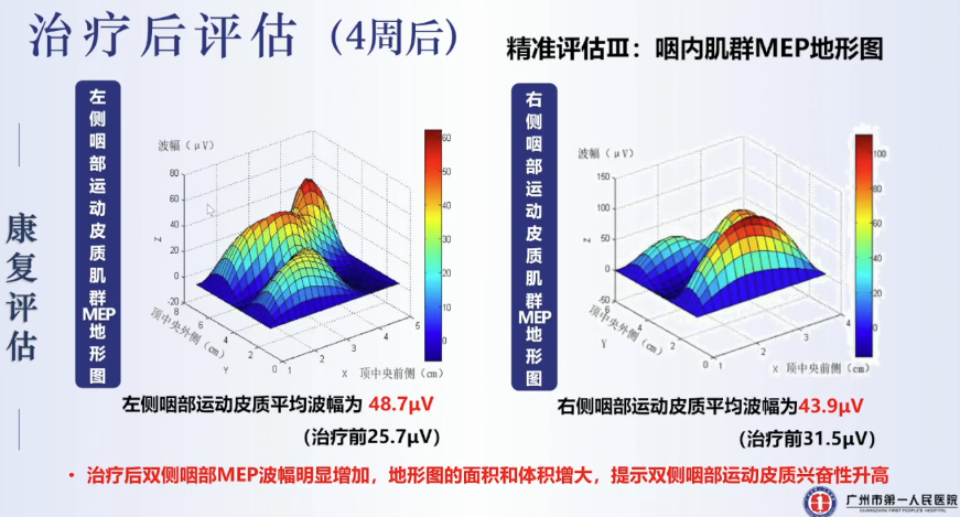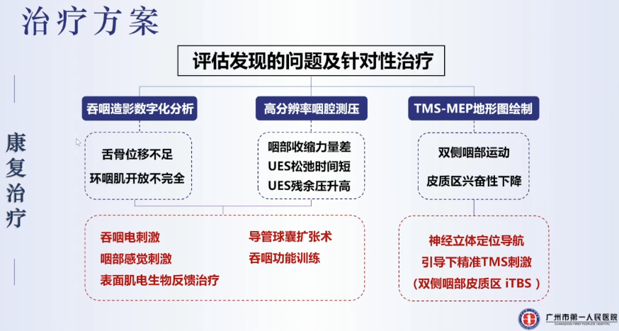 本次报告分享了三种可以应用到临床中的精准化康复技术:吞咽造影数字化分析、高分辨率咽腔测压及神经立体定位导航引导下MEP地形图绘制。在本病例中我们采用了这三种技术进行患者的康复评估,并通过导航进行精准化、个性化的TMS治疗。后期随着传统康复和精准化康复相结合的发展,吞咽康复无论是从评估还是从治疗上都将变得越来越明确、高效和个性化。