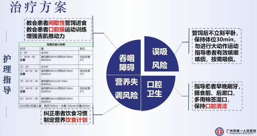 远期目标:争取1个月内脱离鼻饲管,恢复经口进食各种性状食物,改善情绪,回归家庭及社会。