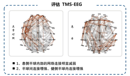 TMS-EEG结果提示患者半球间以及健侧半球内的连接增强代偿患侧功能受损,见下图。