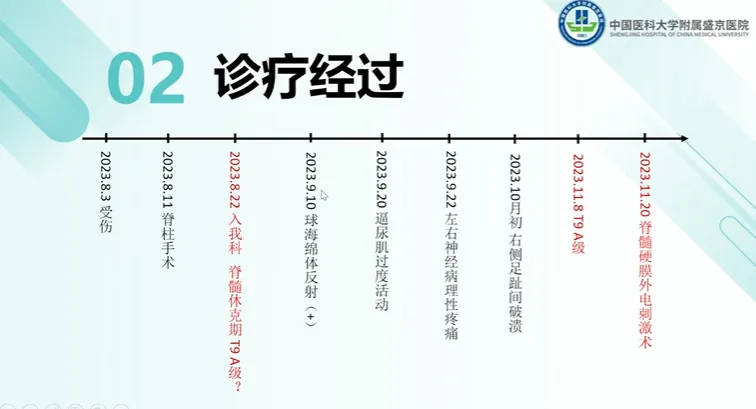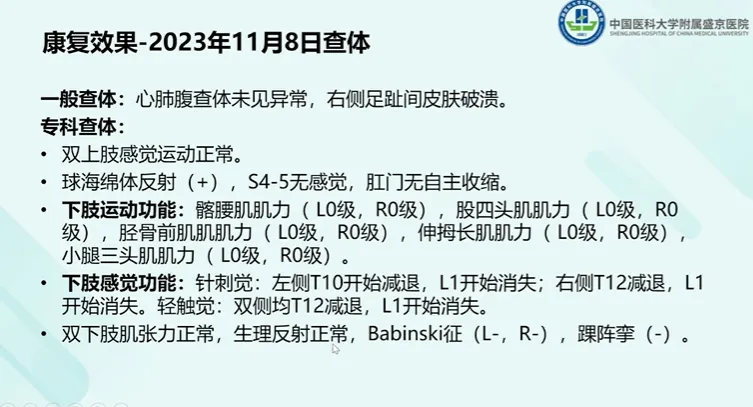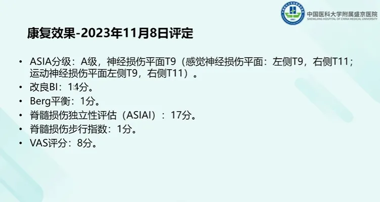 来自中国医科大学附属盛京医院的姜雪医师分享了一例临床案例,该案例的主题为脊髓电刺激与任务特异性康复的整合有助于完全性脊髓损伤患者的功能恢复。姜医师的临床工作方向为脊髓损伤的康复治疗与评定、排尿及排便障碍的康复管理、产后盆底及功能的评估与康复治疗、脑卒中及颅脑损伤的康复以及肉毒毒素注射治疗改善肌张力障碍。下面是姜医师带来的案例分享。