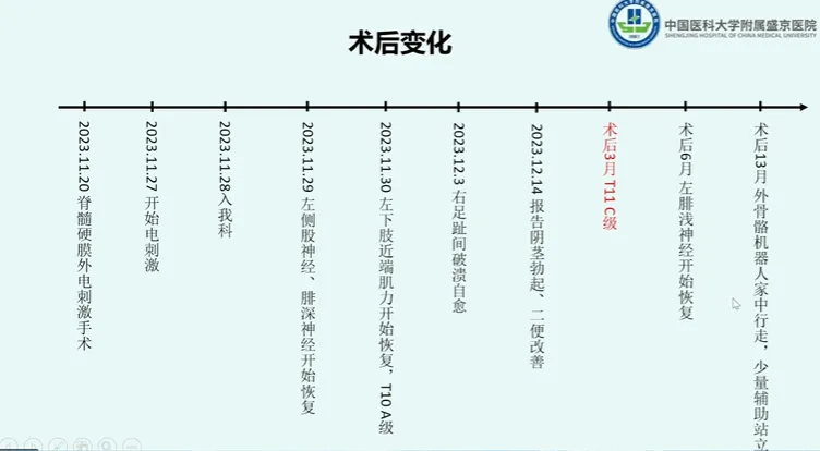 中国医科大学附属盛京医院刘静副教授从神经外科的角度上做出了点评,脊髓电刺激作用于截瘫患者,在肢体功能上,包括尿便方面上具有改善。该病例中,患者植入脊髓电刺激器后,迅速产生效果,提示这个疗法除了在运动功能上,在其他辅助功能上为患者改善生活质量也是有很大的帮助的。其次,刘教授认为,早期功能检测是很重要的,这可能会使康复的步子走得更稳。