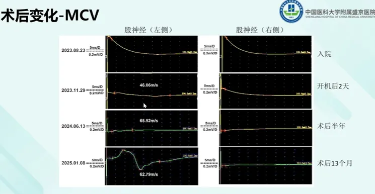 术后1周开机开始电刺激。术后第八天再次入我科,开始康复治疗。康复治疗项目包括:脑机接口、经颅磁刺激、双侧髂腰肌外周磁刺激(磁刺激治疗方案同术前)、下肢智能机器人辅助行走训练、PT、站立架站立训练、坐位功率自行车训练等。