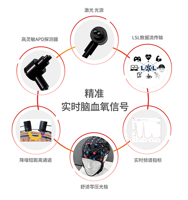 内置短通道检测,有效分离浅层信号,提高脑皮层数据真实性;主动探测器保证数据质量。