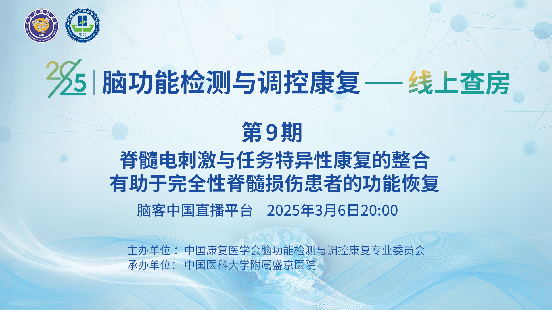 【脑客中国】脊髓电刺激与任务特异性康复的整合有助于完全性脊髓损伤患者的功能恢复 | 2025年脑功能检测与调控康复——线上查房 第9期